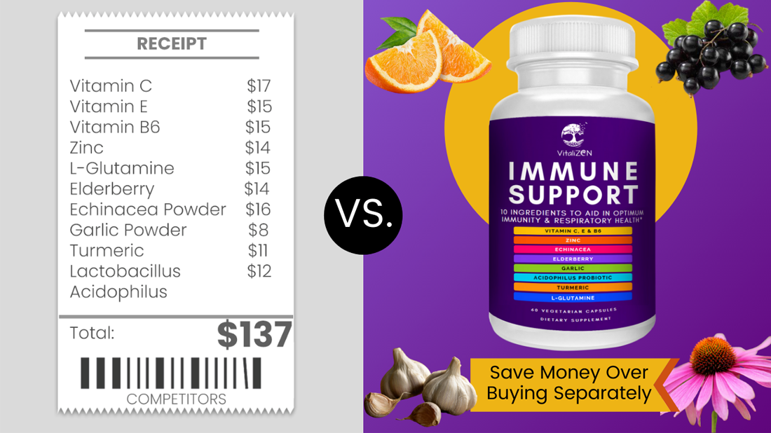 Complete formula. I recommend it.The global situation has made me look for other alternatives to support my immune system. I´ve investigated a lot trying to find the best immune-support vitamins and I found this supplement, it got them all! Also, it's a natural formula, the price is very affordable and I'm resting assured that all those ingredients are helping somehow to keep myself healthy.